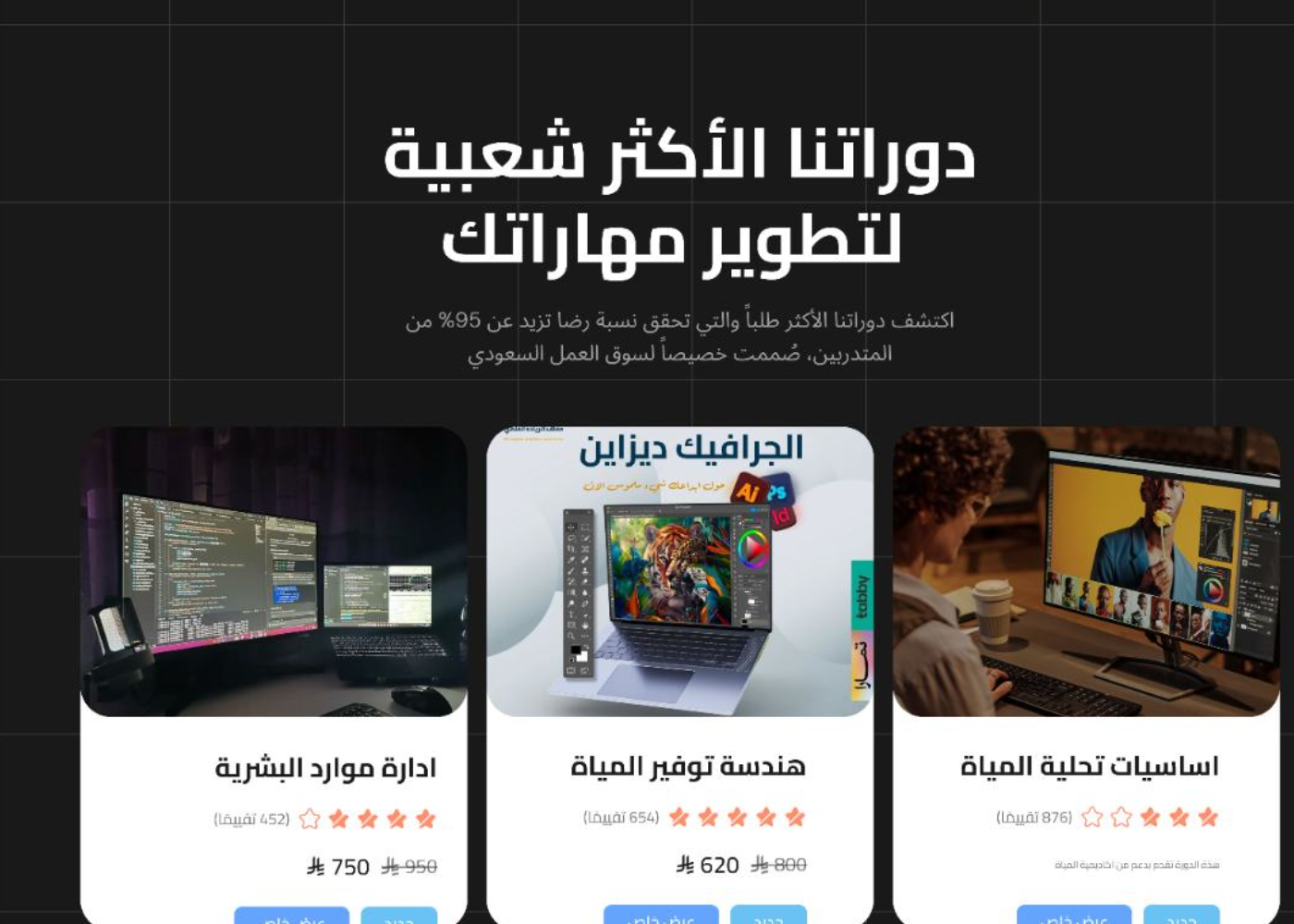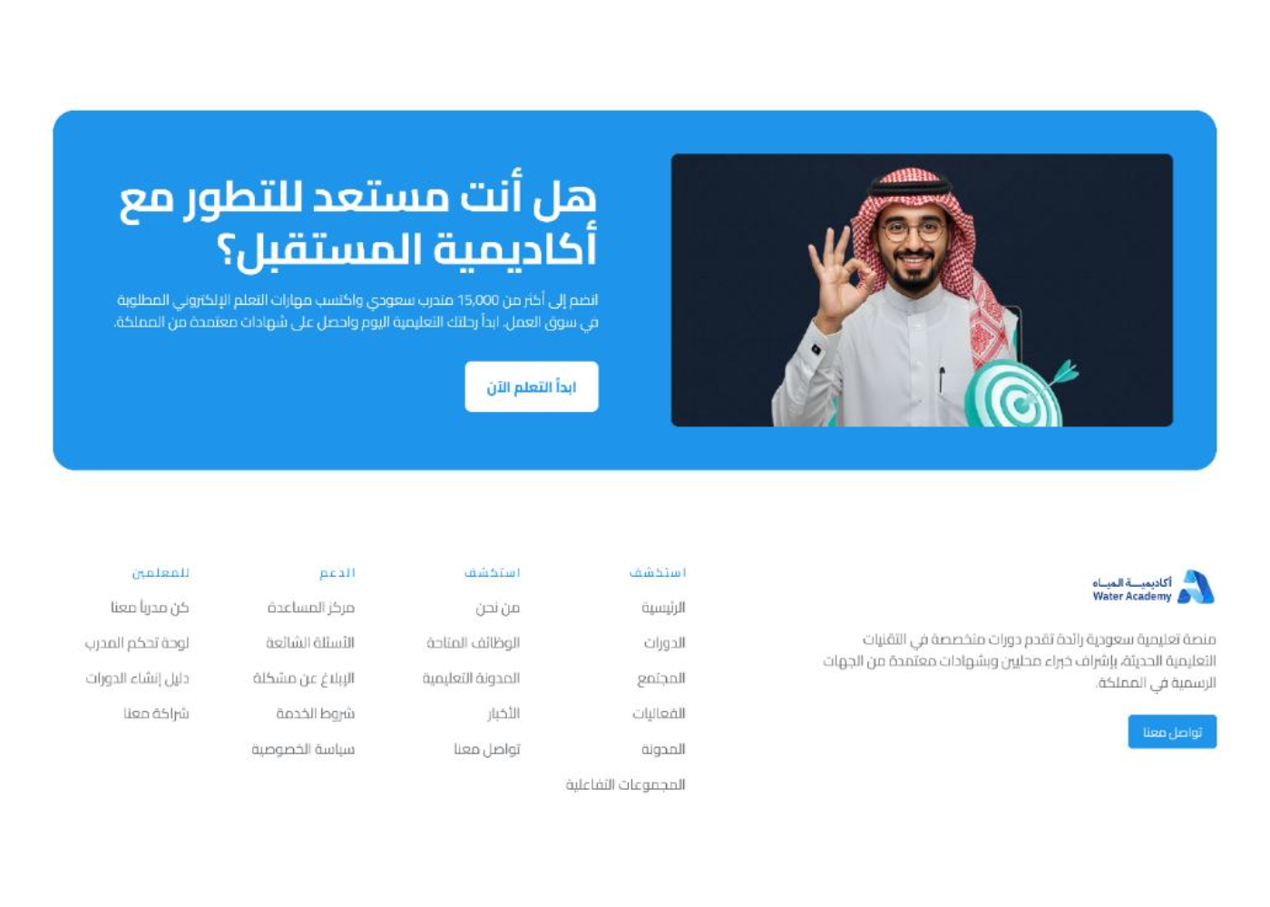 تعكس واجهات أكاديمية المياه منصة تعليمية رقمية متكاملة صُممت لدعم التعلم المستمر وتطوير المهارات المهنية في قطاع المياه. تجمع المنصة بين المحتوى التدريبي المتخصص، وإدارة المتدربين، ولوحات متابعة الأداء، في تجربة واحدة سلسة وسهلة الاستخدام.