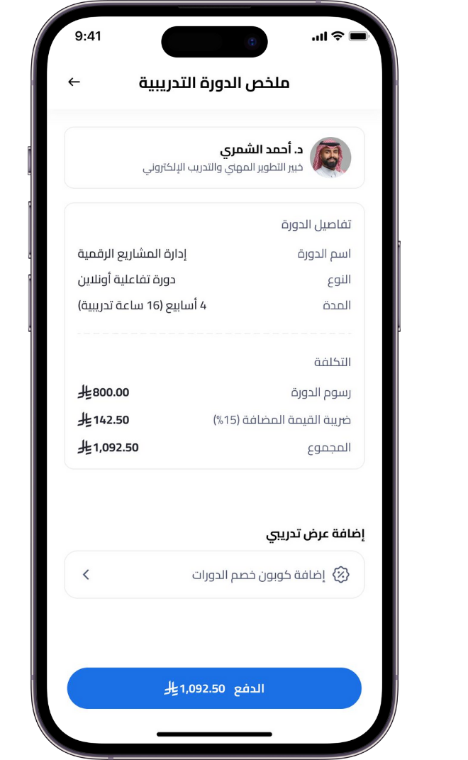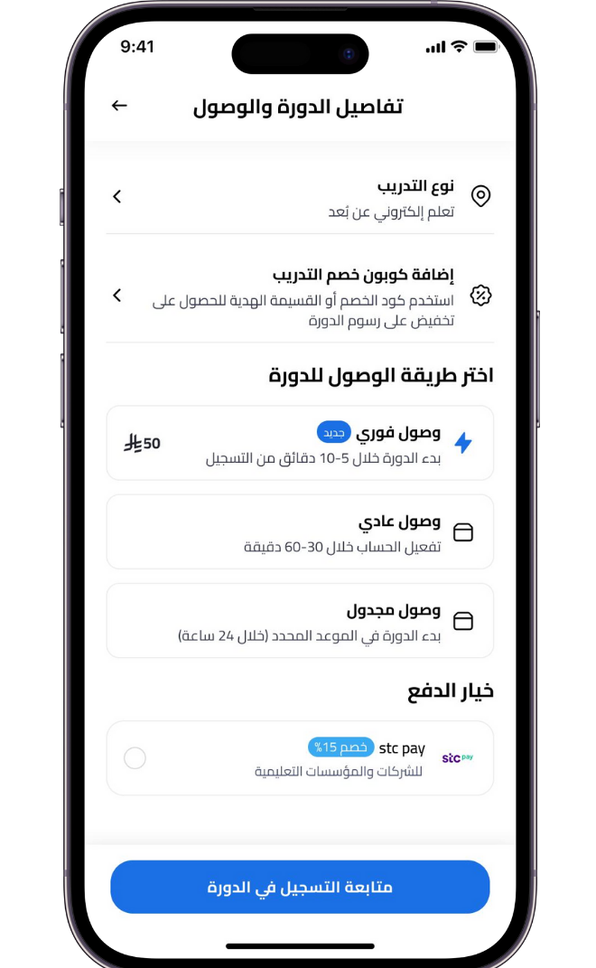 تُظهر الشاشات المعروضة أن المنصة متاحة عبر واجهات ويب متجاوبة وأجهزة لوحية، مما يتيح للمتدربين الوصول إلى الدورات، متابعة المحتوى